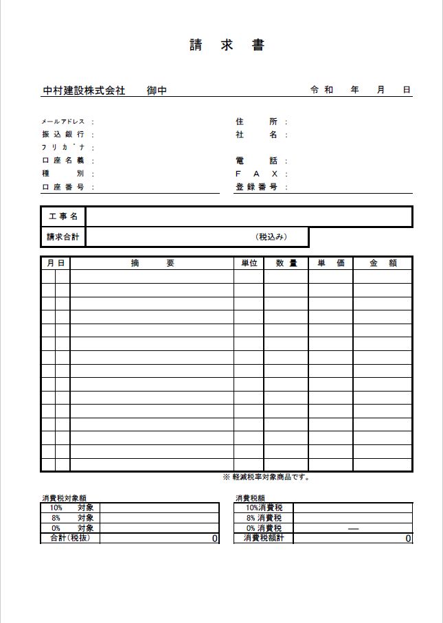 1つの現場に1つの請求書(工事現場別)の作成をお願い致します。